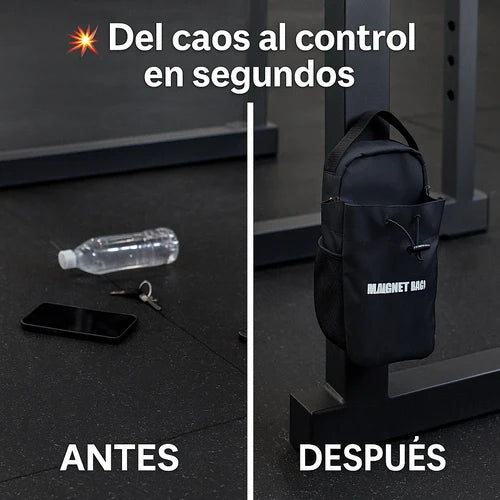 MAGNETIC GYM BAG mantiene todo organizado, elevado y protegido, permitiéndote entrenar sin interrupciones.